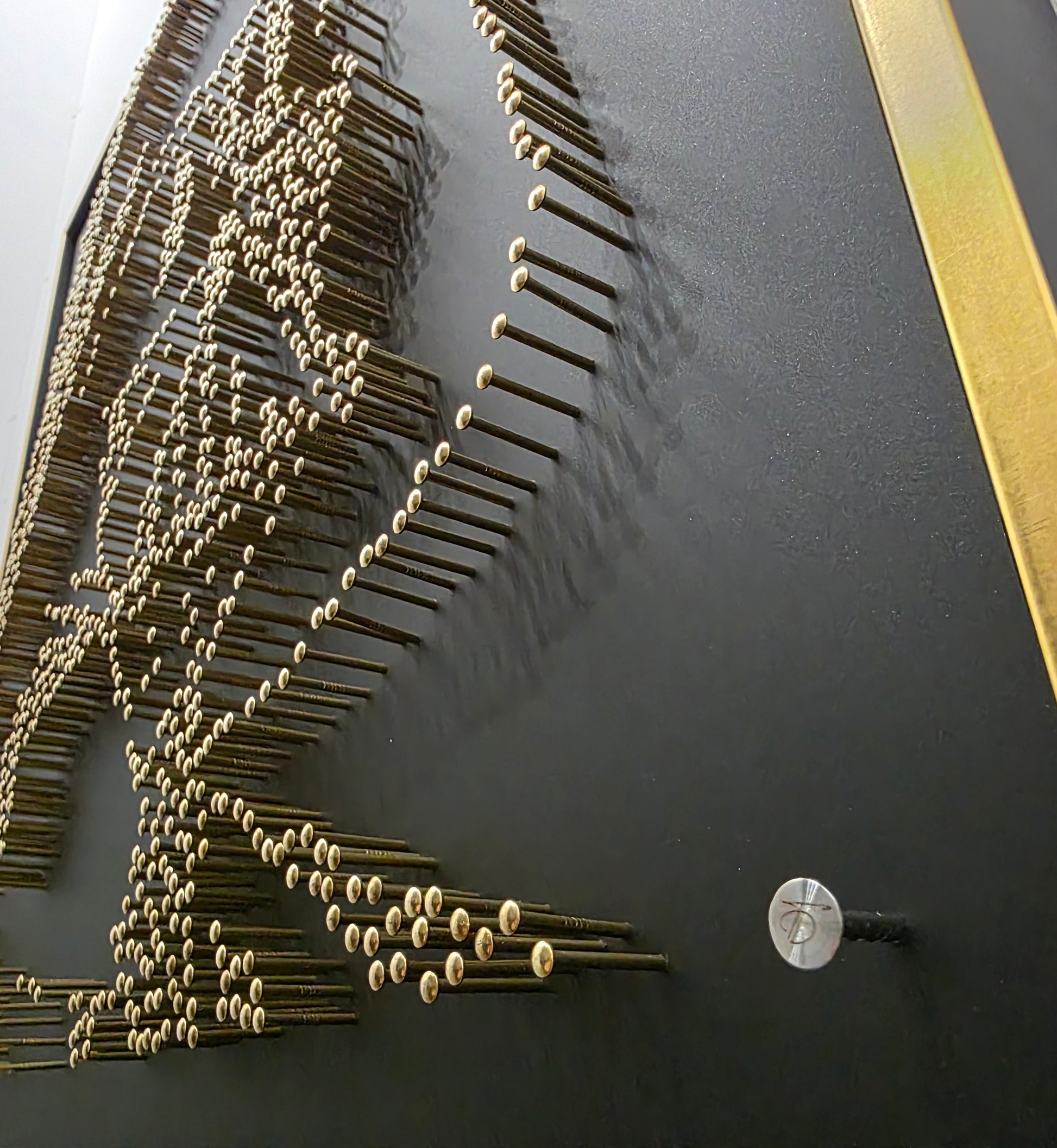 The use of pure brass gives a warm, golden glow. Over time, the nails may develop a natural patina, a subtle, living finish that deepens the character of the work and ensures each piece becomes increasingly unique.