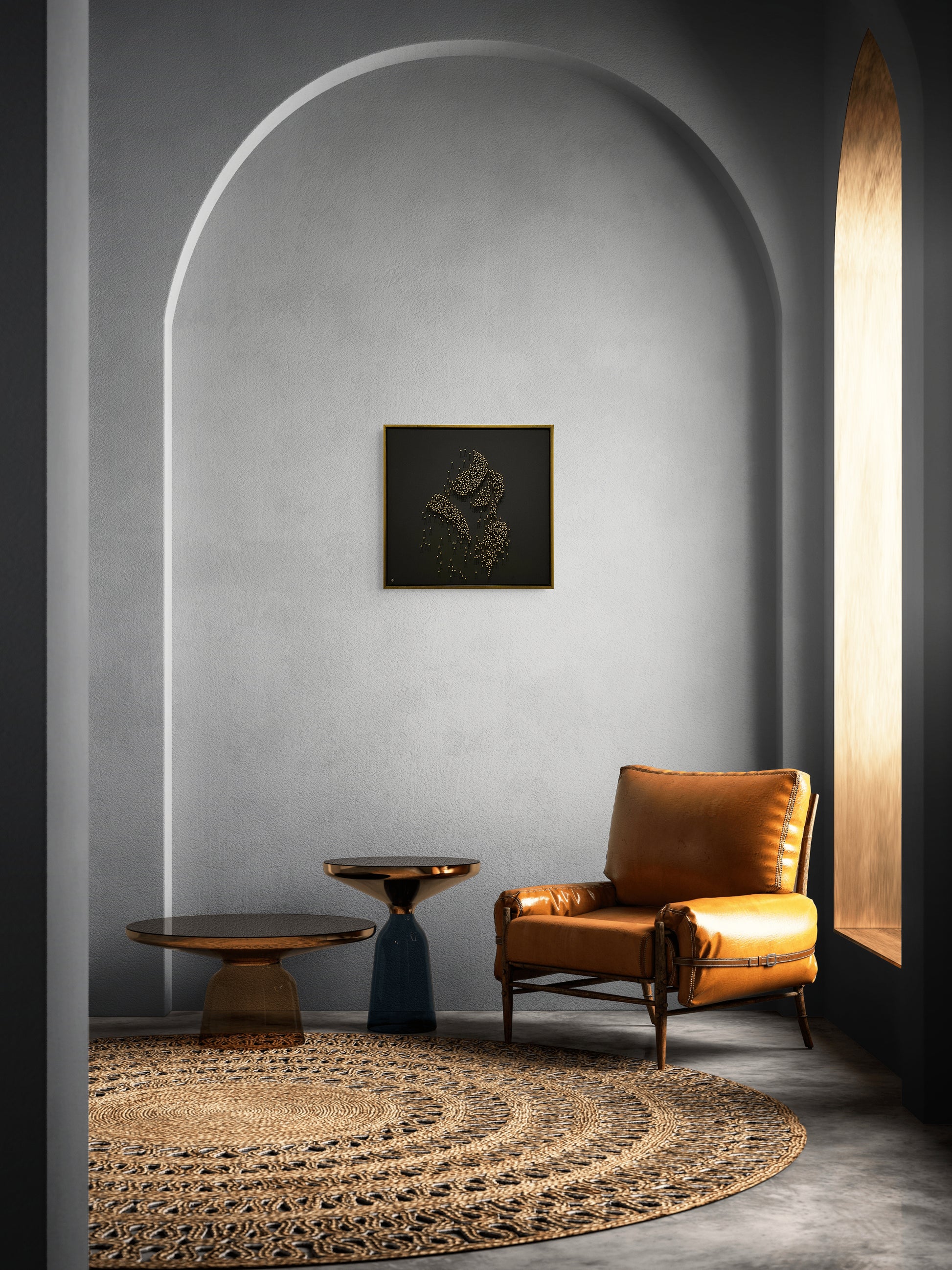 The use of pure brass gives a warm, golden glow. Over time, the nails may develop a natural patina, a subtle, living finish that not only deepens the character of the work but also mirrors the theme itself, love that grows richer, stronger, and more resilient as time passes.