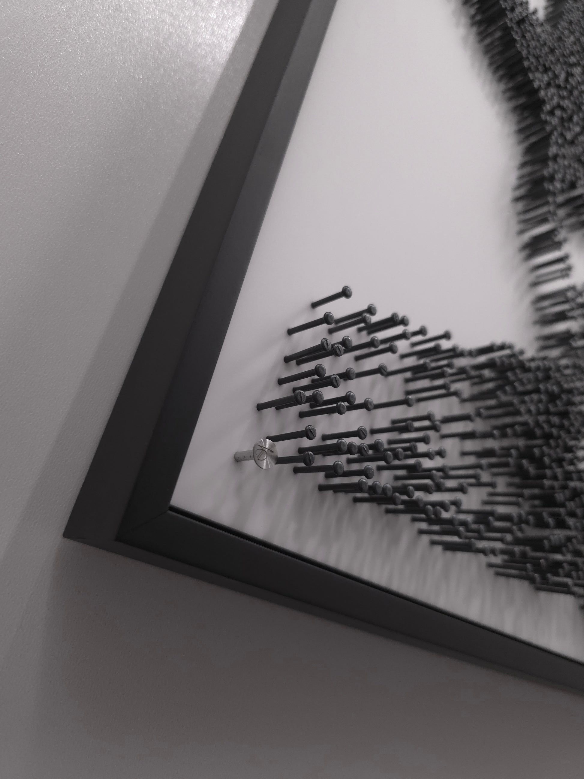 This piece is part of the second collection of Art with Nails by Tijs Dragtsma, realized in a strictly limited edition of ten. Each artwork is slightly unique but always part of the same vision.