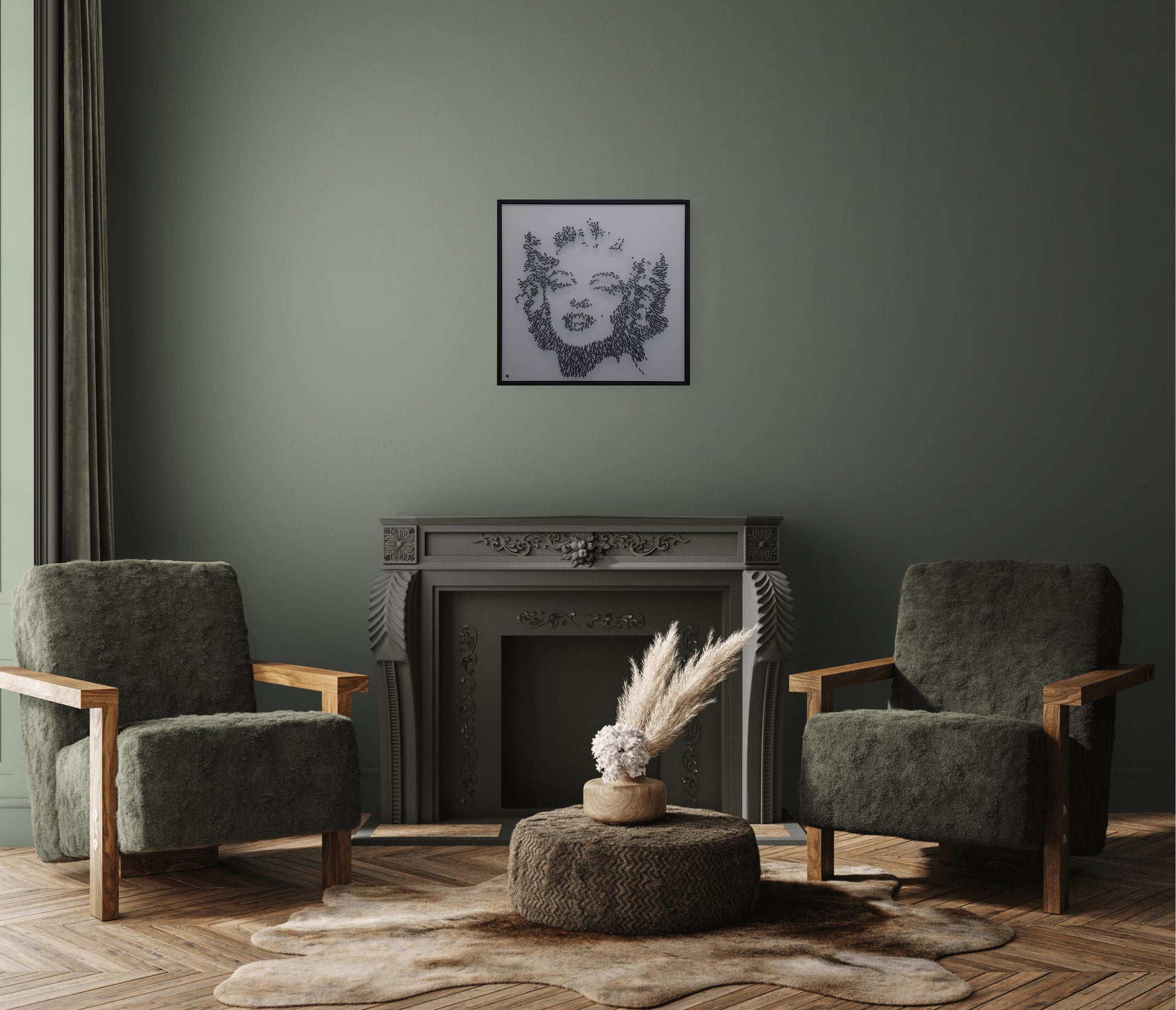 Framed in a handmade Dutch float frame in matte black wood, and signed and numbered on the reverse, this work stands as both homage and reinvention. A contemporary tribute to one of the most enduring faces of the twentieth century.