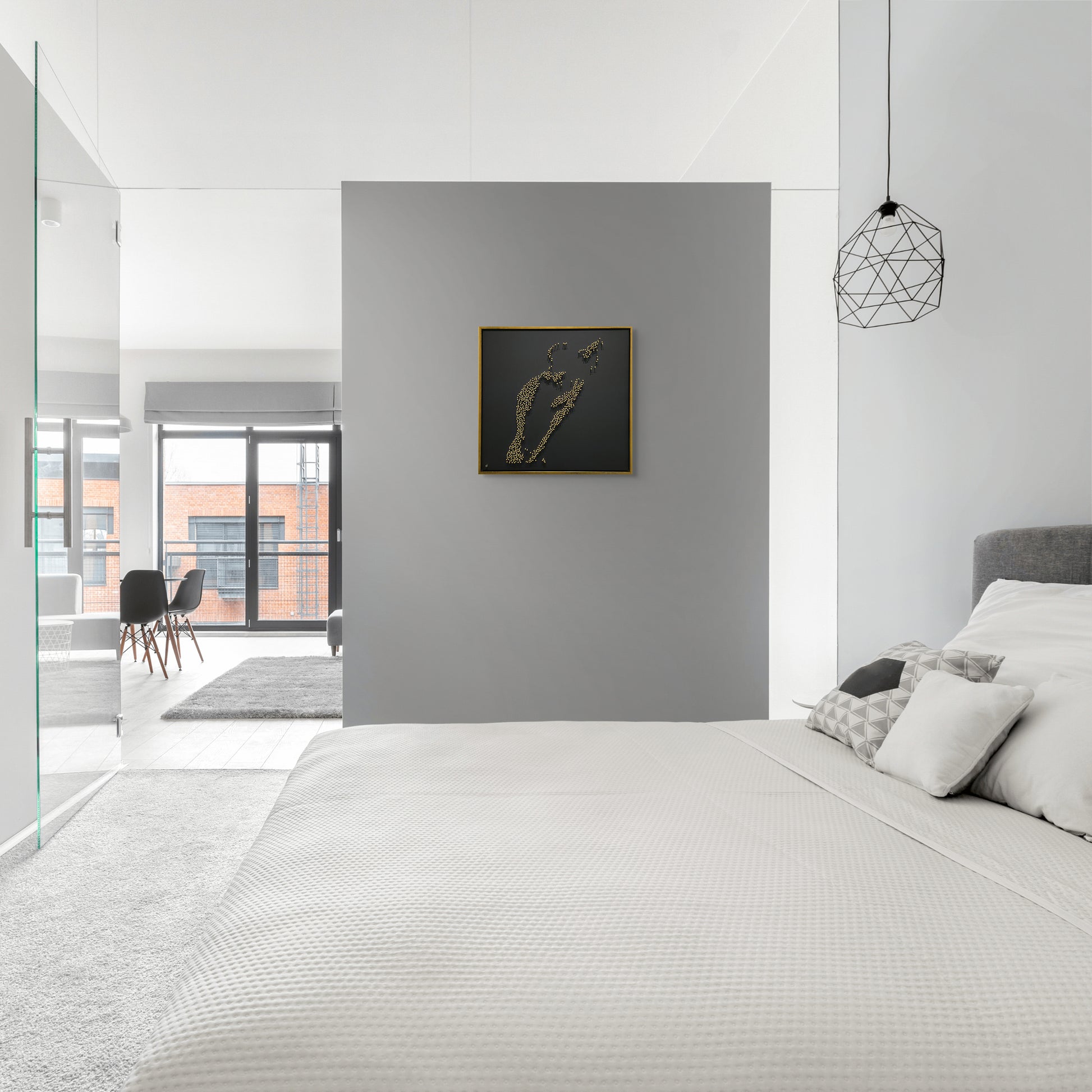 Framed in a handmade Dutch float frame in matte black wood with a brushed gold edge, and signed and numbered on the reverse, this work offers a contemporary ode to eternal love and passion.