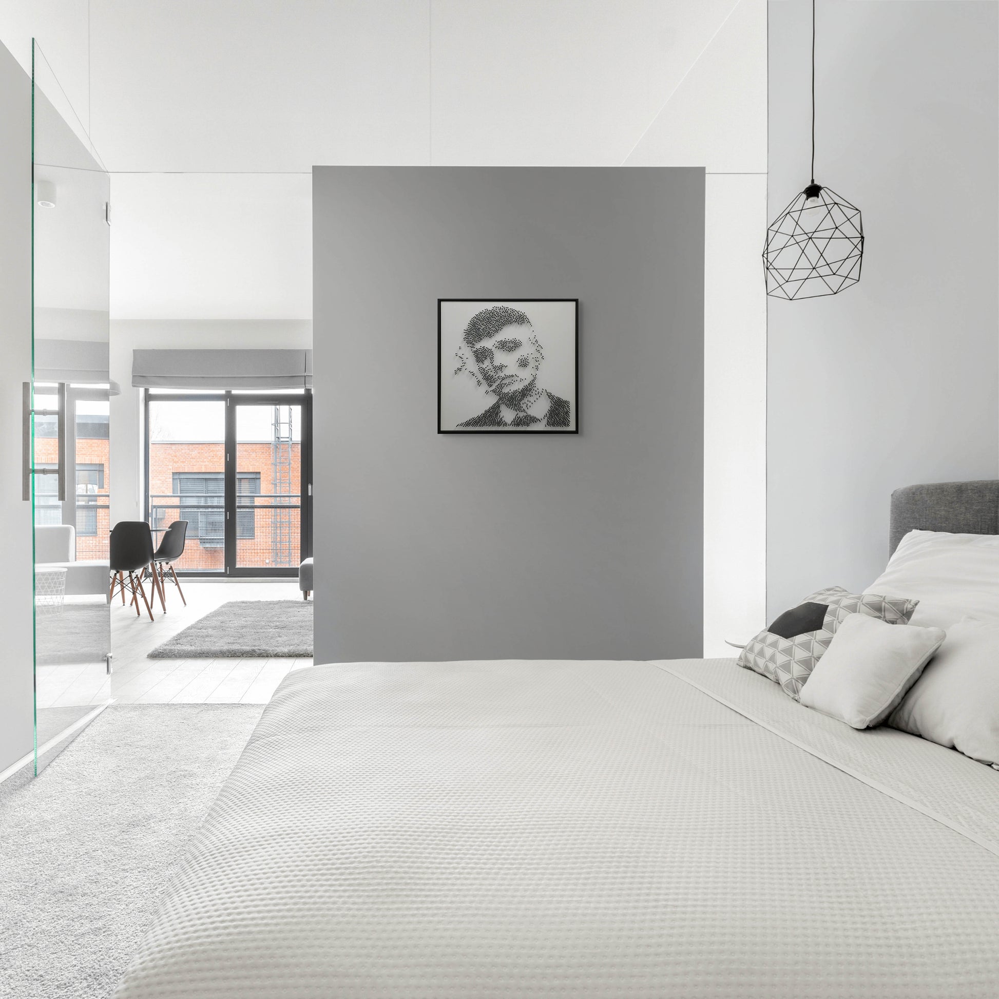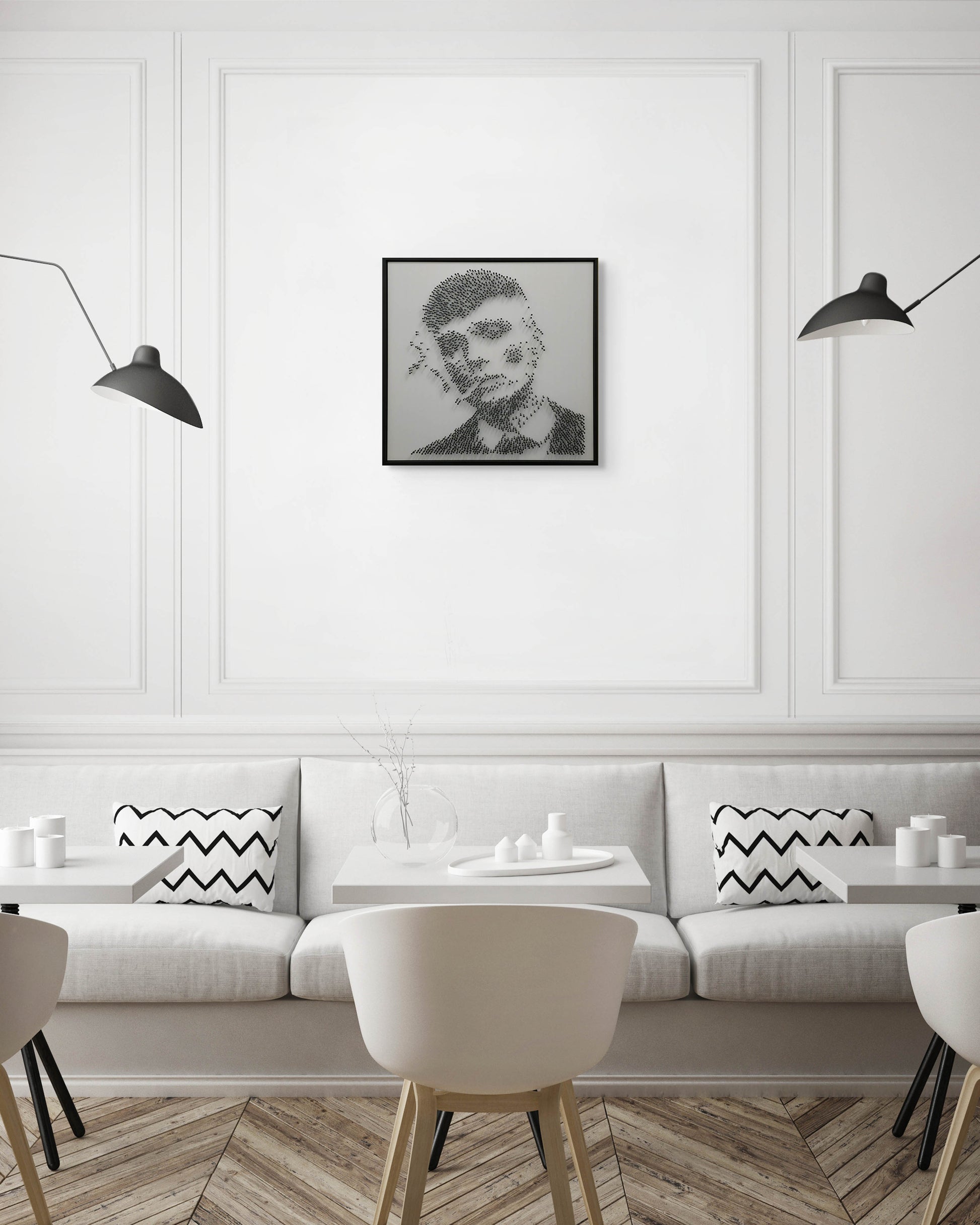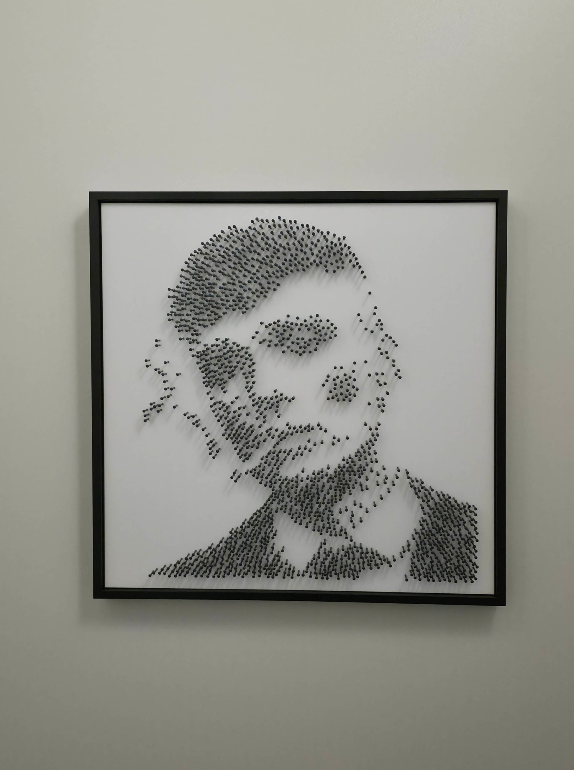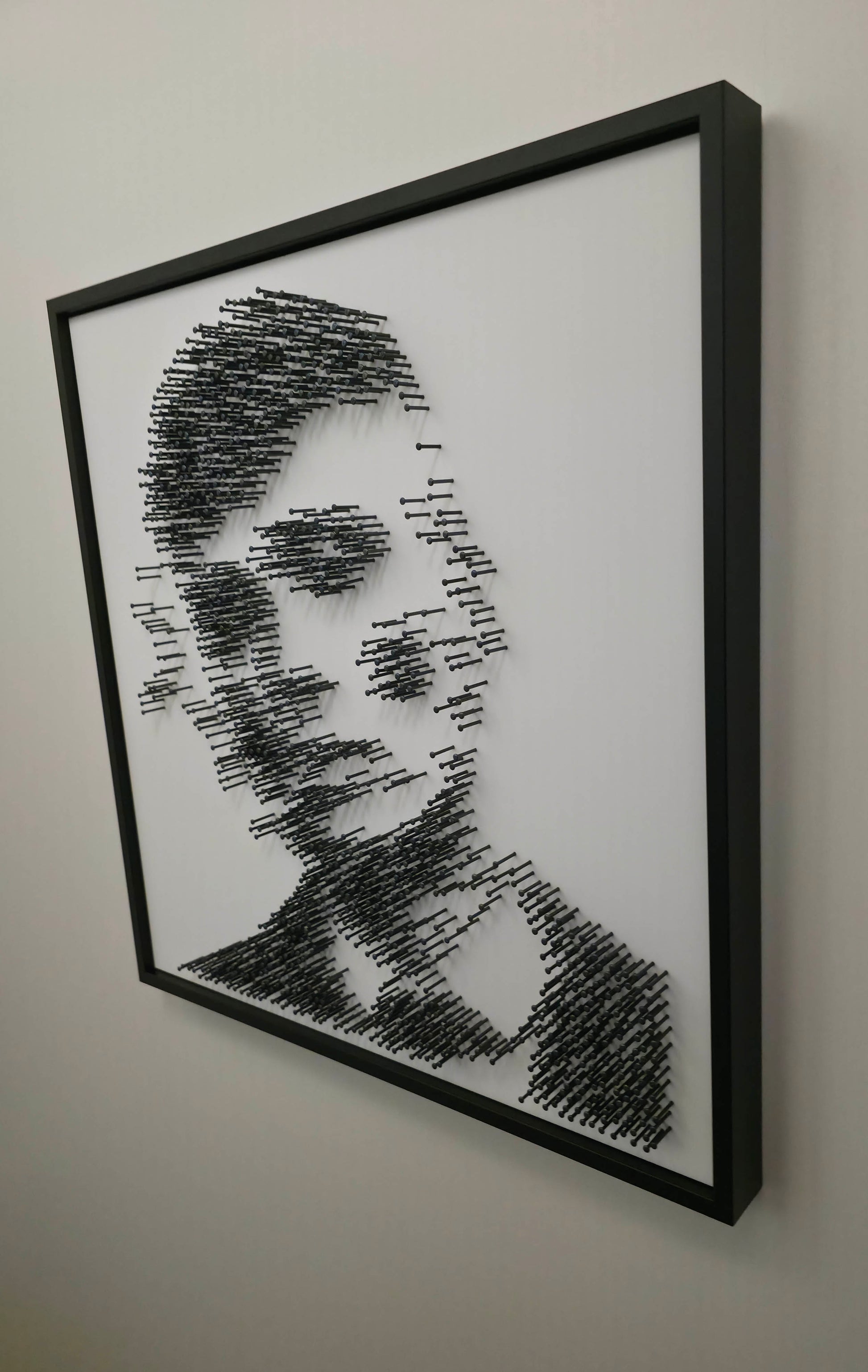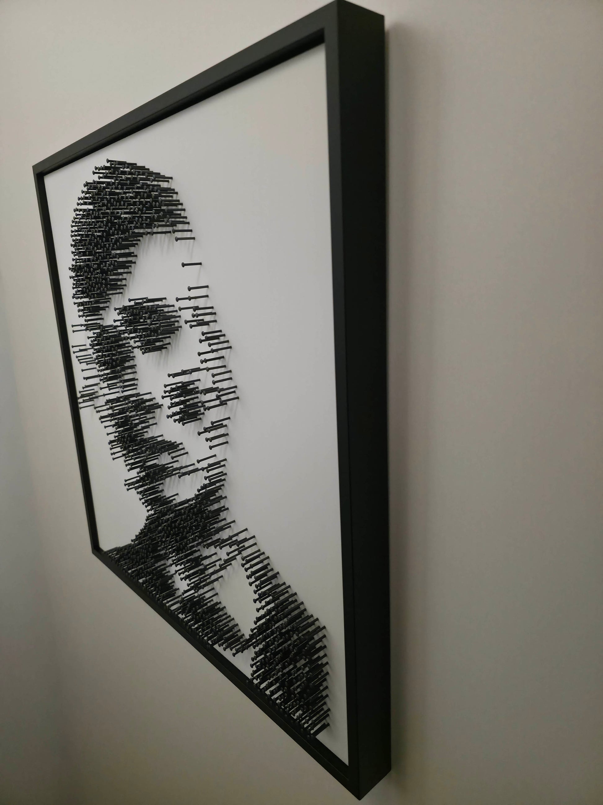 A tribute to control, silence, and razor-sharp strategy — composed from 1,549 black steel nails, embedded one by one into matte white acrylic glass.